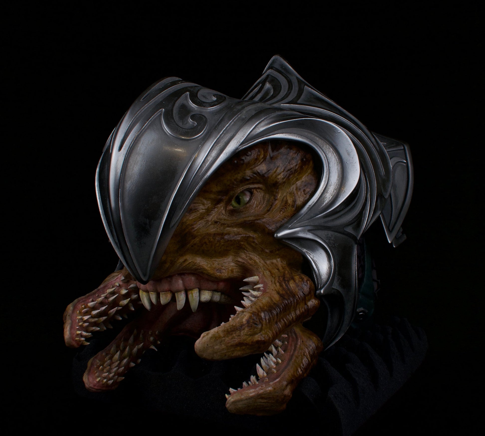 Crafted with precision using premium materials, this piece is as durable as it is stunning. Every detail of the Arbiter’s head—down to the intricate mandibles, textured armor, and battle-worn scars—has been faithfully recreated to embody the noble yet fearsome presence of the Sangheili warrior. Finished with hand-painted accents using top-grade metallic and matte paints, the piece radiates an authentic, otherworldly vibe that captures the spirit of Halo.